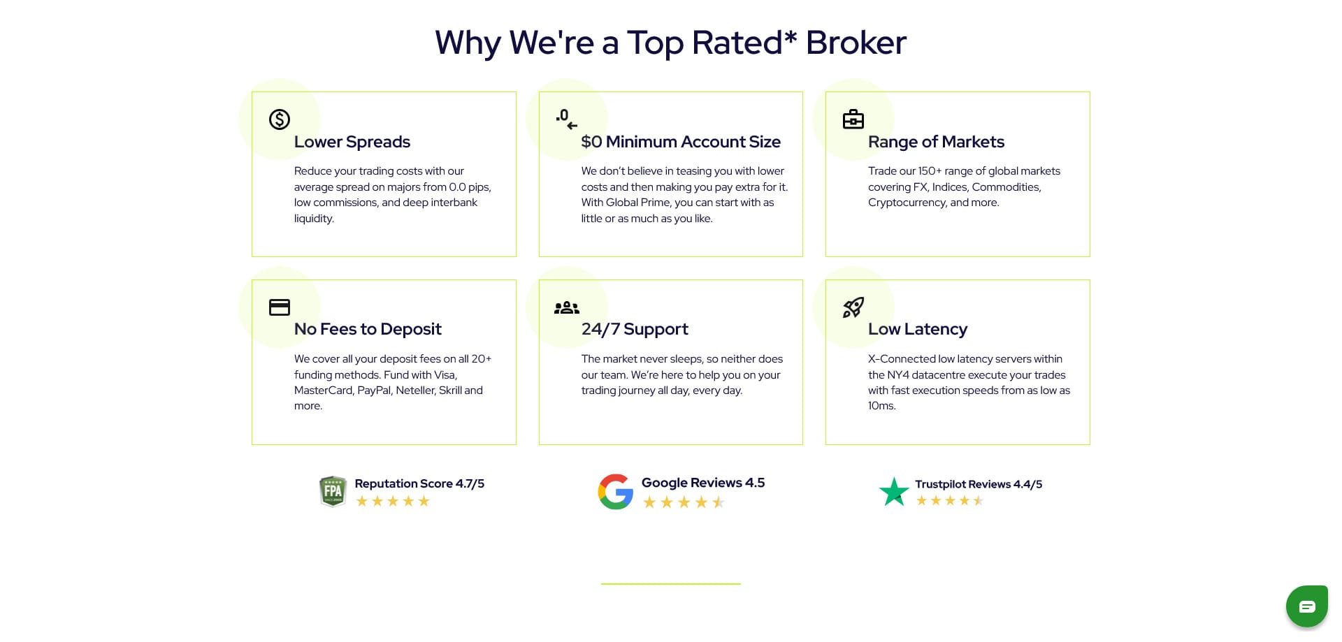 Global Prime is a Sydney-based online broker that gives traders access to 150+ markets. You can trade forex, crypto CFDs, indices, US share CFDs, commodities, and bond CFDs. The broker caters to retail and institutional clients and offers ECN execution, low-latency access to top-tier liquidity, and transparent trade data.