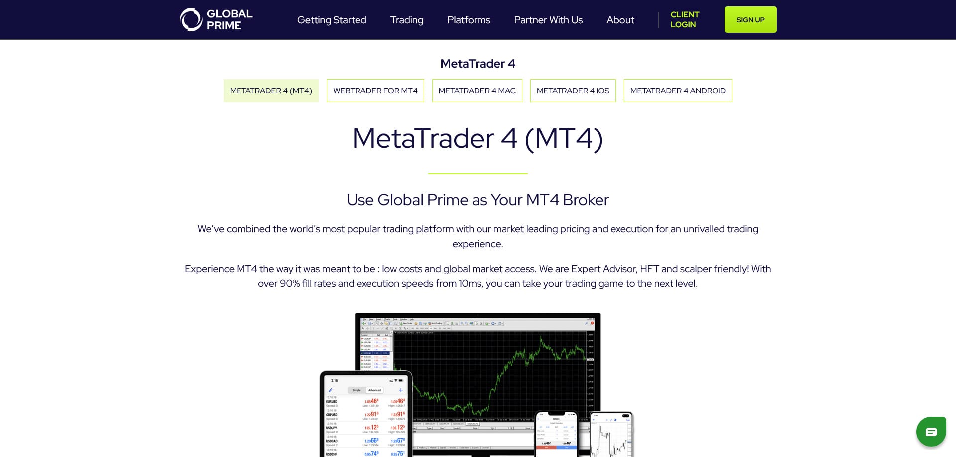 Global Prime offers ECN accounts for both retail and institutional clients. Core features include: